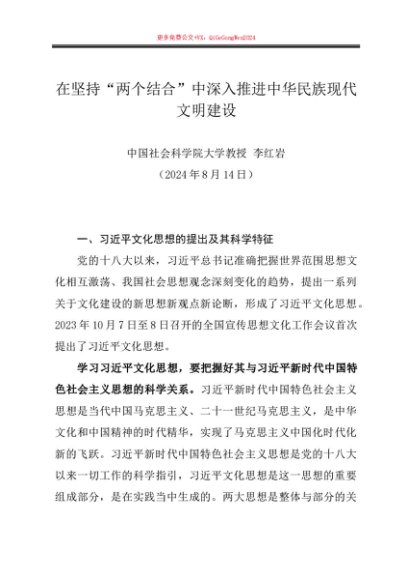 / 党课讲稿:20240814在坚持“两个结合”中深入推进中华民族现代文明建设(文化思想)——中国社会科学院大学教授 李红岩