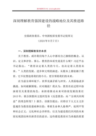 / 党课讲稿:20240807深刻理解教育强国建设的战略地位及其推进路径——全国政协委员、中央团校原党委书记倪邦文