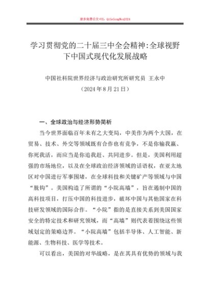 党课讲稿:20240821学习党的二十届三中全会精神:全球视野下中国式现代化发展战略——中国社科院世界经济与政治研究所研究员 王永中