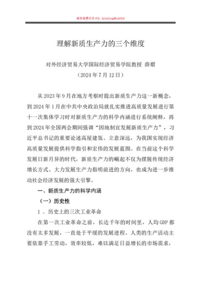 / 党课讲稿:20240712理解新质生产力的三个维度——对外经济贸易大学国际经济贸易学院教授 薛熠