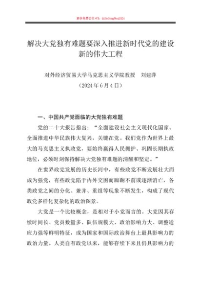 党课讲稿:20240604(党纪学习教育、七一党课)解决大党独有难题要深入推进新时代党的建设新的伟大工程——对外经济贸易大学马克思主义学院教授 刘建萍