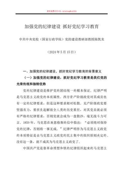 / 党课讲稿:20240515加强党的纪律建设 抓好党纪学习教育——中央党校党的建设教研部教授陈凯龙