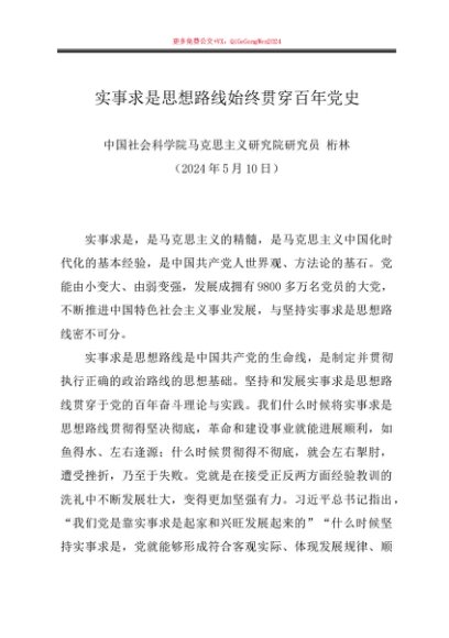 / 党课讲稿:20240510实事求是思想路线始终贯穿百年党史——中国社会科学院马克思主义研究院研究员 桁林