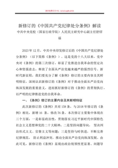 党课讲稿:20240420新修订的《中国共产党纪律处分条例》解读——中央党校人民民主研究中心副主任舒绍福