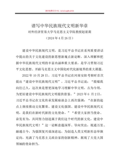 / 党课讲稿:20240426谱写中华民族现代文明新华章——对外经济贸易大学马克思主义学院教授赵崔莉