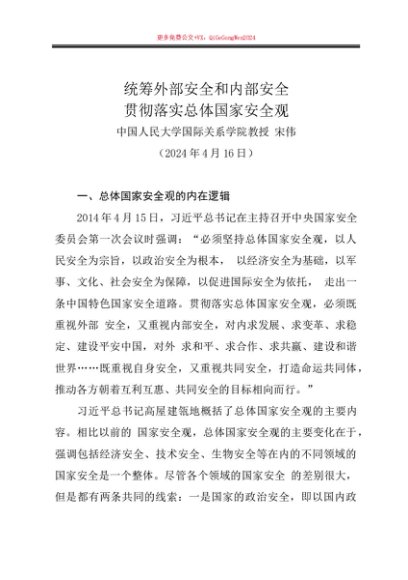 / 党课讲稿:20240416统筹外部安全和内部安全 贯彻落实总体国家安全观——中国人民大学国际关系学院教授宋伟