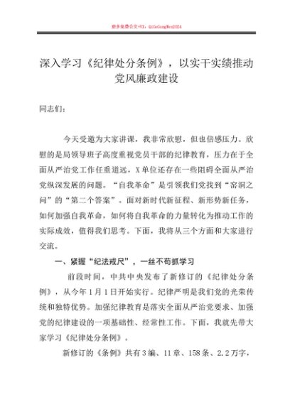 / 党课讲稿:20240327深入学习《纪律处分条例》,以实干实绩推动党风廉政建设
