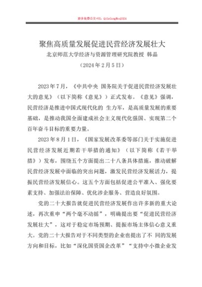 / 党课讲稿:20240205聚焦高质量发展促进民营经济发展壮大——北京师范大学教授 韩晶