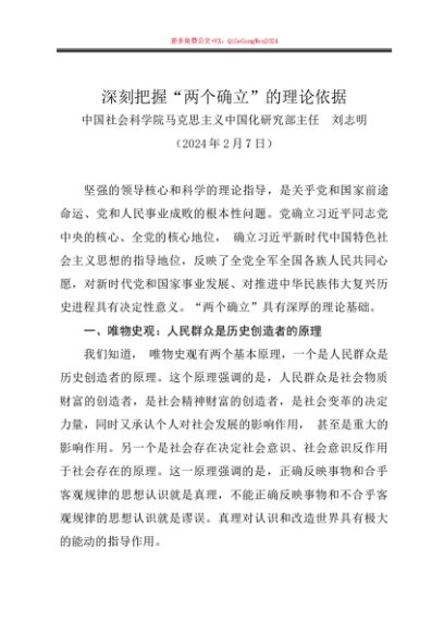 / 党课讲稿:20240207深刻把握“两个确立”的理论依据——中国社科院 刘志明