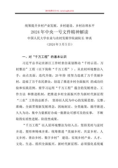 / 党课讲稿:20240305解读2024年中央一号文件精神——中国人民大学农业与农村发展学院副院长
