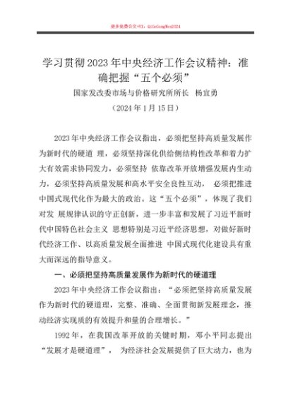党课讲稿:20240115学习贯彻2023年中央经济工作会议精神:准确把握“五个必须”——国家发改委市场与价格研究所所长杨宜勇