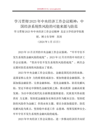 / 党课讲稿:20240115学习贯彻2023年中央经济工作会议精神:中国经济系统性风险的可能来源与防范