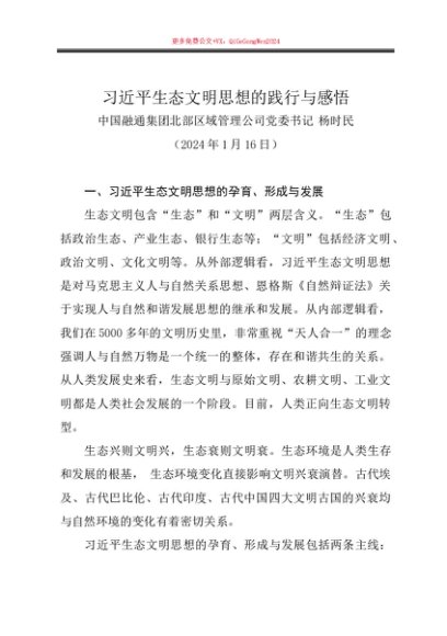 / 党课讲稿:20240116习近平生态文明思想的践行与感悟——中国融通集团北部区域管理公司党委书记杨时民