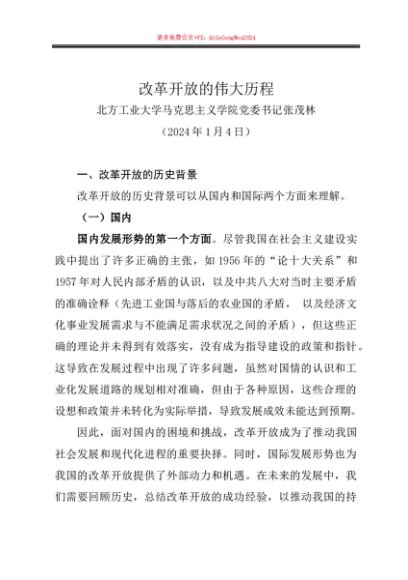 / 党课讲稿:20240104改革开放的伟大历程——北方工业大学马克思主义学院书记张茂林