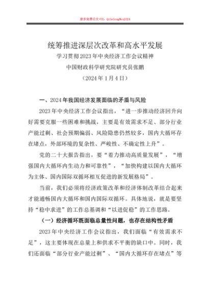 / 党课讲稿:20240104中央经济工作会议解读:统筹推进深层次改革和高水平——中国财政科学研究院研究员张鹏