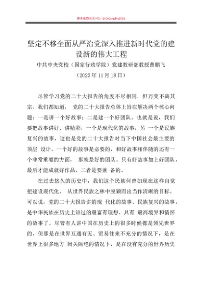 / 党课讲稿:20231118坚定不移全面从严治党深入推进新时代党的建设新的伟大工程——中央党校教授曹鹏飞