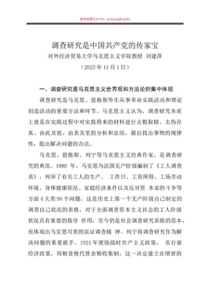 / 党课讲稿:20231101调查研究是中国共产党的传家宝——对外经济贸易大学教授 刘建萍