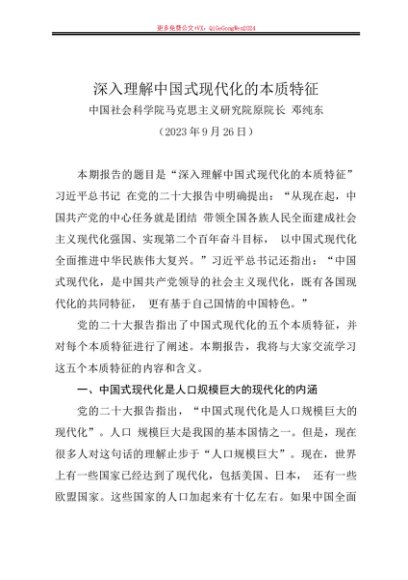 / 党课讲稿:20230926深入理解中国式现代化的本质特征——社科院邓纯东