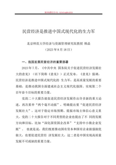 / 党课讲稿:20230818民营经济是推进中国式现代化的生力军—北京师范大学教授韩晶(政策解读)
