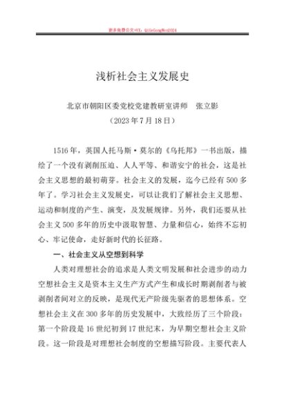 / 党课讲稿:20230718浅析社会主义发展史—北京朝阳区委党校讲师张立影