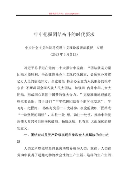 / 党课讲稿:20230608牢牢把握团结奋斗的时代要求—社会主义学院教授左鹏(二十大)