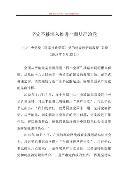 / 党课讲稿:20230523坚定不移深入推进全面从严治党—中央党校教授郑琦(二十大)