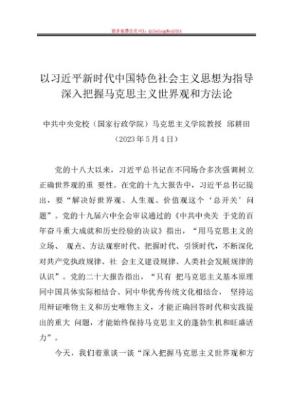 党课讲稿:20230504以习近平新时代中国特色社会主义思想为指导深入把握马克思主义世界观和方法论—中央党校教授邱耕田(主题教育)