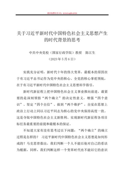 / 党课讲稿:20230506关于习近平新时代中国特色社会主义思想产生的时代背景的思考—中央党校教授陈江生(主题教育)