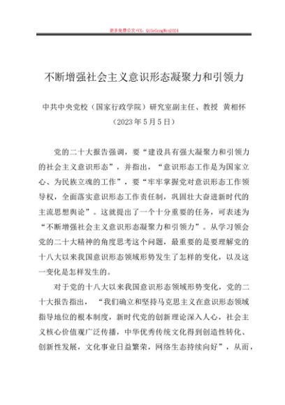 / 党课讲稿:20230505不断增强社会主义意识形态凝聚力和引领力—中央党校教授黄相怀(二十大)