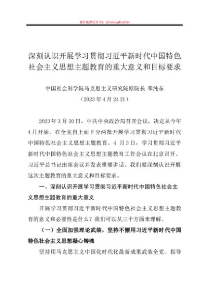 / 党课讲稿:20230424深刻认识开展学习贯彻习近平新时代中国特色社会主义思想主题教育的重大意义和目标要求—社科院原院长邓纯东