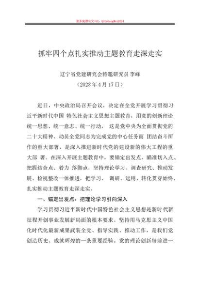 / 党课讲稿:20230417抓牢四个点扎实推动主题教育走深走实—辽宁省党建研究会李峰