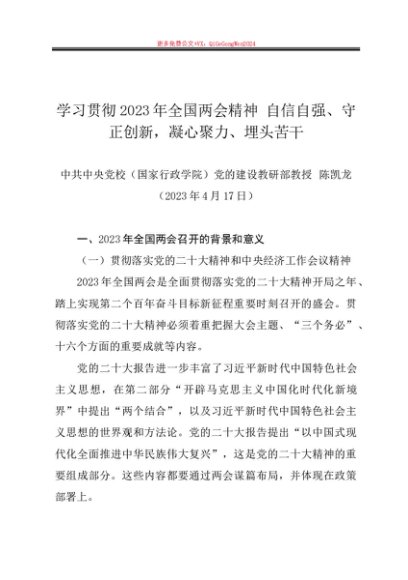/ 党课讲稿:20230417学习贯彻2023年全国两会精神—中央党校教授陈凯龙(政府工作报告、党和国家机构改革方案)