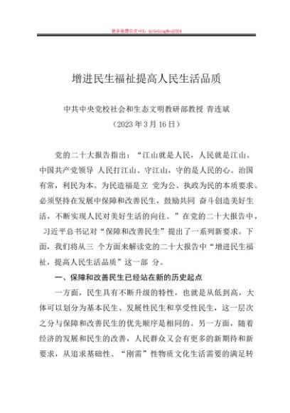 / 党课讲稿:20230316保障和改善民生增进民生福祉提高人民生活品质—中央党校教授青连斌(二十大)