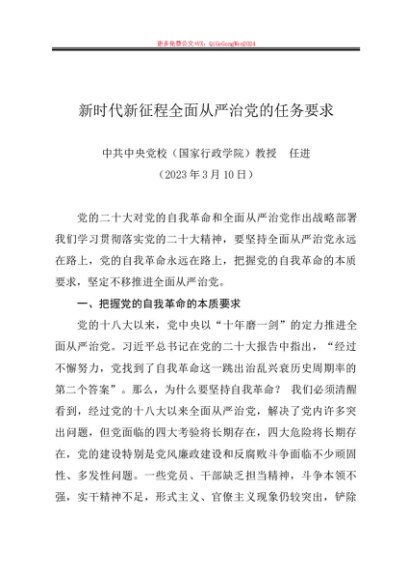 / 党课讲稿:20230310新时代新征程全面从严治党的任务要求——中央党校教授任进(二十大)