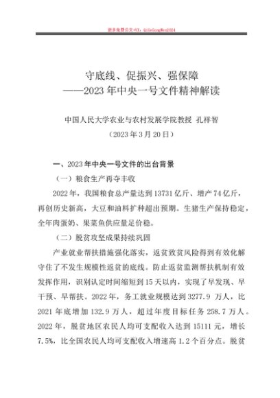 / 党课讲稿:20230320守底线、促振兴、强保障——2023年中央一号文件精神解读—中国人民大学农业与农村发展学院教授孔祥智