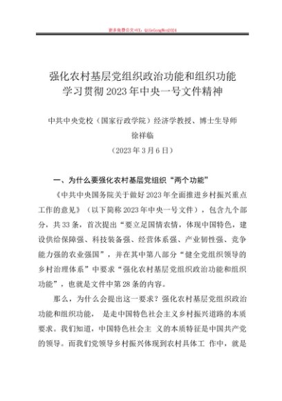 / 党课讲稿:20230306强化农村基层党组织政治功能和组织功能 解读2023年中央一号文件——中央党校徐祥临