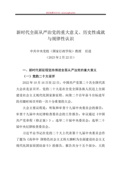 / 党课讲稿:20230222新时代全面从严治党的重大意义、历史性成就与规律性认识—中央党校教授任进
