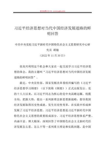 党课讲稿:20221130习近平经济思想对当代中国经济发展道路的鲜明回答(《习近平经济思想学习纲要》)——中央党校研究员 胡敏