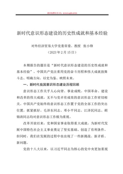 / 党课讲稿:20230215新时代意识形态建设的历史性成就和基本经验——对外经济贸易大学教授张小锋