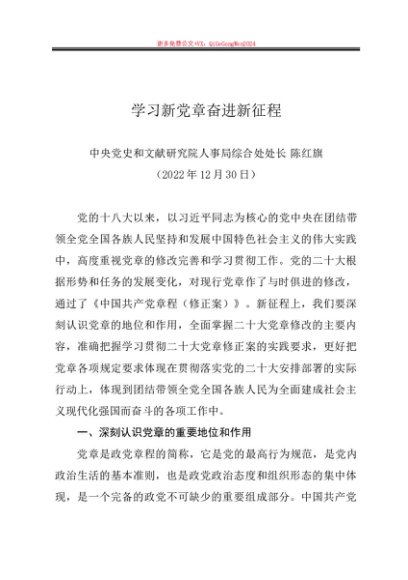 / 党课讲稿:20221220学习新党章 奋进新征程——中央党史和文献研究院人事局综合处陈红旗