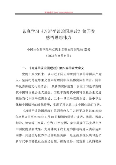 / 党课讲稿:20220909认真学习《习近平谈治国理政》第四卷感悟思想伟力——社科院马克思主义研究院副院长龚云