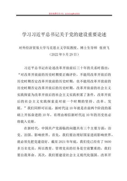/ 党课讲稿:20220929学习习近平总书记关于党的建设重要论述——对外经济贸易大学马克思主义学院教授张世飞