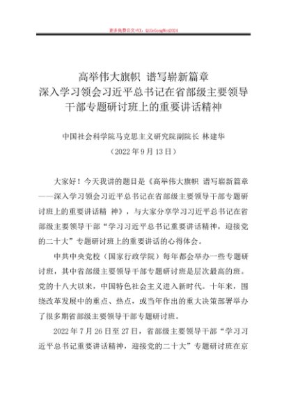 党课讲稿:20220913深入学习领会习近平总书记在省部级主要领导干部专题研讨班上的重要讲话精神——社科院马克思主义研究院副院长林建华