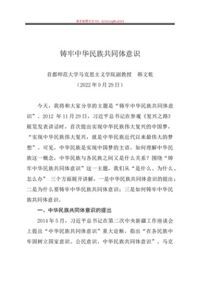 / 党课讲稿:20220929铸牢中华民族共同体意识——首都师范大学马克思主义学院副教授韩文乾