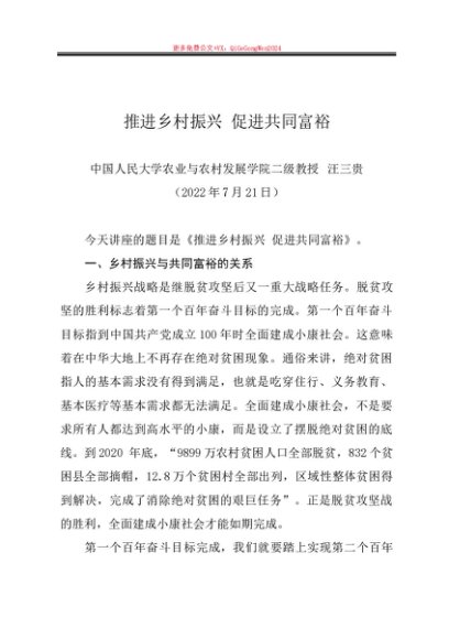 / 党课讲稿:20220721推进乡村振兴 促进共同富裕——中国人民大学教授汪三贵