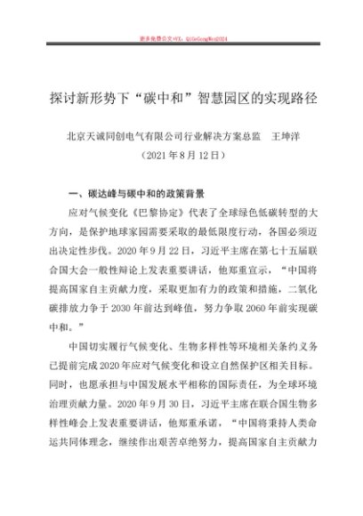 / 党课讲稿:20210812探讨新形势下“碳中和”智慧园区的实现路径——北京天诚同创电气有限公司王坤洋