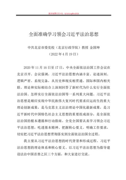 / 党课讲稿:20220419全面准确学习领会习近平法治思想——北京市委党校教授金国坤