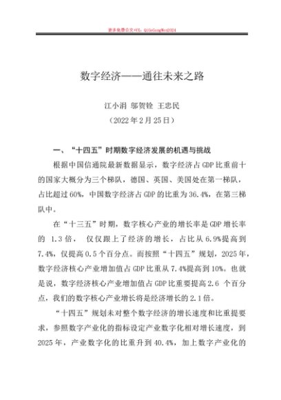 党课讲稿:20220225数字经济——通往未来之路——江小涓 邬贺铨 王忠民
