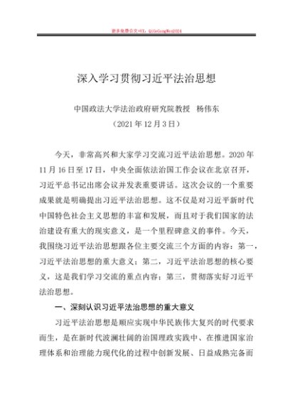 / 党课讲稿:20211203深入学习贯彻习近平法治思想——中国政法大学教授杨伟东