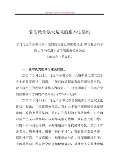 党课讲稿:20220105党的政治建设是党的根本性建设学习习近平总书记关于党的政治建设的重要论述——社科院副教授史为磊